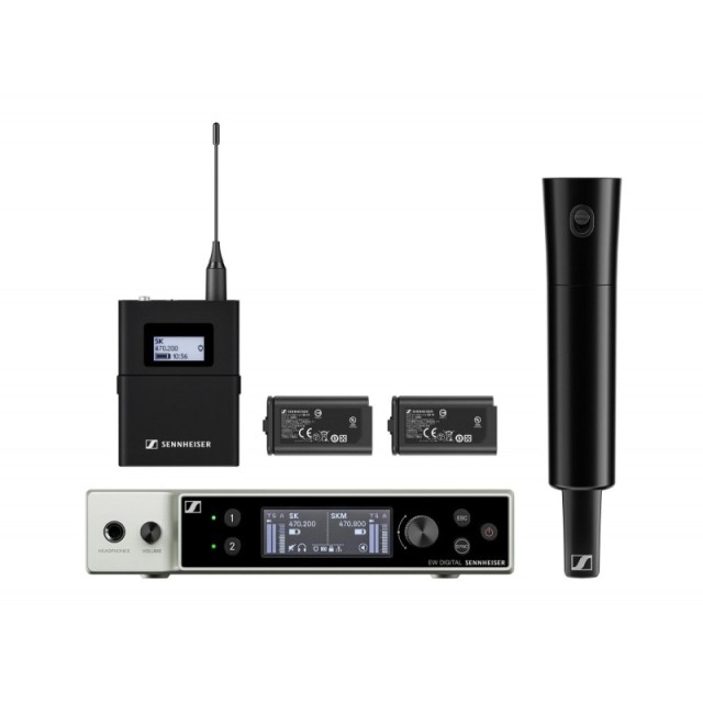Sennheiser EW-DX SK/SKM duální bezdrátový systém pro profesionální zvuk. Ideální pro zpěváky a mluvené slovo. Obsahuje ruční vysílač s dynamickou kapslí a kapesní vysílač pro váš oblíbený mikrofon. Digitální přenos zajišťuje čistý zvuk bez rušení. Spolehlivé a snadno ovladatelné řešení pro jeviště, konference a další aplikace. Získejte vynikající zvukovou kvalitu a svobodu pohybu s tímto všestranným bezdrátovým systémem. Užijte si flexibilitu a výkon pro každou situaci.