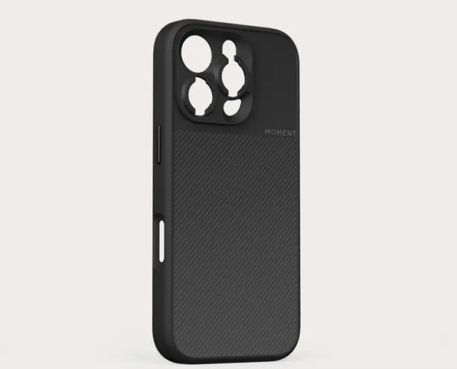 Pouzdro Moment pro iPhone 16 Pro - černé: Pouzdro kompatibilní s MagSafe s funkcí profesionálního fotoaparátu a zvýšenou ochranou pro fotografy.
