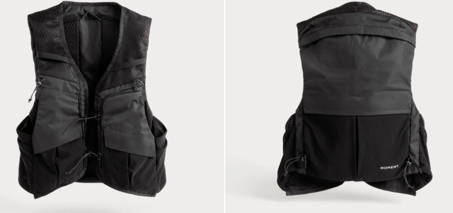 Vesta Moment Exposure 10L, navržená pro fotografy na cestách, spojuje funkčnost batohu s pohyblivostí vesty. Inspirována běžeckými a rybářskými vestami nabízí přiléhavý střih, který se při pohybu nehoupá a rovnoměrně rozkládá váhu na přední, zadní a boční část těla.