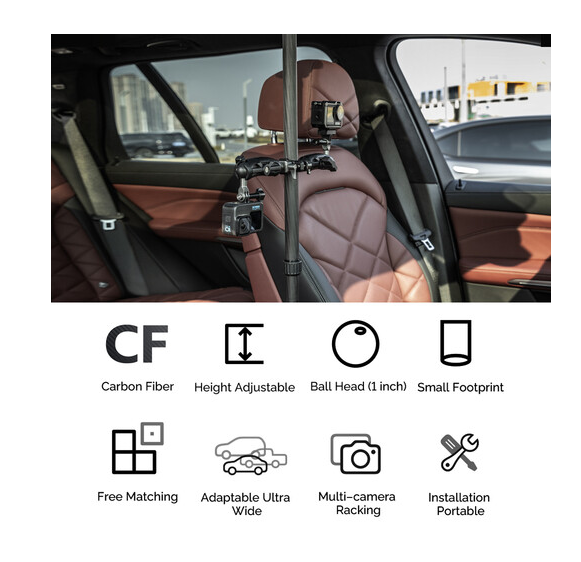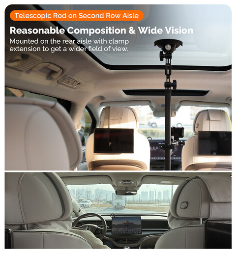 Nastavitelná teleskopická tyč MOVMAX se svorkou na smartphone umožňuje stabilní natáčení z čelního skla automobilu pomocí mobilních zařízení. Její délka se dá nastavit od 75 do 125 cm, má lehkou karbonovou konstrukci, dvě přísavky pro střešní okno a středovou konzoli a navíc obsahuje svorku na smartphone s kulovou hlavou, 3,9" rameno s dvojitou objímkou a svorku na tyč s kulovou hlavou pro plně nastavitelnou polohu.