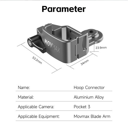 Hladce integrujte kameru DJI Osmo Pocket 3 s gimbalem do systému MOVMAX Blade Arm pro upevnění do auta pomocí MOVMAX Blade Arm Hoop Connector, kompaktní šedé hliníkové svorky, která se bezpečně ovine kolem základny rukojeti Osmo a pomocí zajišťovacího šroubu umožňuje rychlé připevnění odolné proti vibracím, což umožňuje…