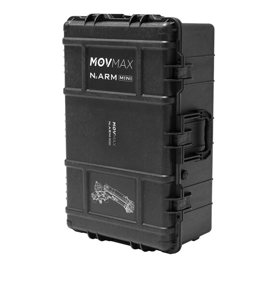 Přepravní kufr MOVMAX Flight Case pro sadu N2 Air Arm Mini Pro Kit je přenosné, odolné řešení s pevnou skořepinou, vnitřní výstelkou z pěnové hmoty na míru, podpěrným držákem a kladkovým systémem, které je určeno k bezpečnému uložení a přepravě celé sady Mini Pro Kit – včetně ramena tlumícího nárazy, izolátoru vibrací, přísavek a příslušenství – pro plynulou filmovou produkci na místě pomocí vozidla.