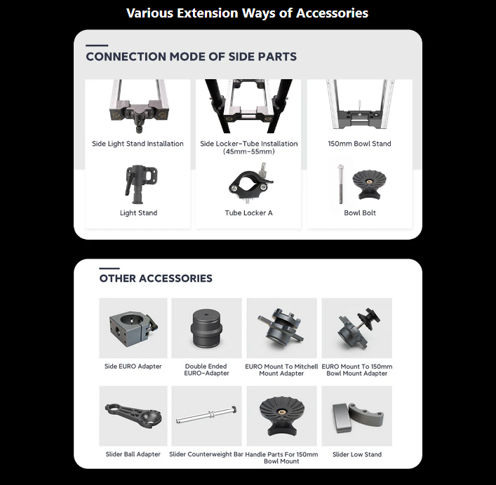 Systém MOVMAX Slider, vyvinutý pro náročné profesionální filmové produkce, nabízí výjimečnou stabilitu a plynulý pohyb v různých délkách – 60 cm, 90 cm, 120 cm, 150 cm, 180 cm a 210 cm – a je tak ideální pro celou řadu natáčecích scénářů. Vozík slideru podporuje uchycení Mitchell, 100 mm bowl a 150 mm bowl, což v kombinaci s 360° adaptérem umožňuje multifunkční provoz v rozsahu 360°. Jeho režim dvojitého použití umožňuje plynulé přepínání mezi režimem Slider Mode, který se vyznačuje ultra přesnými CNC obráběnými hliníkovými, ocelovými a měděnými komponenty pro plynulý pohyb, a režimem Bangi Mode, který přizpůsobuje slider pro použití se stativy, vozíky nebo rigy pomocí adaptérů Euro-mount. Je vyroben z vysoce pevné hliníkové slitiny řady 7 pro letecký průmysl a nabízí odolnost, tuhost a konzistentní výkon. Režim bočního rozšíření umožňuje montáž na světelné stojany, bedny Apple nebo euroadaptéry pro univerzální nastavení. MOVMAX Slider je profesionální nástroj navržený pro přesný, filmový pohyb v jakémkoli produkčním prostředí.