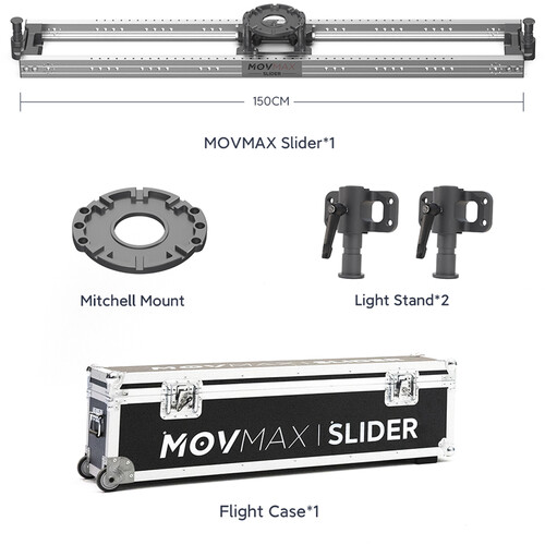 Posuvník MOVMAX s držákem Mitchell (1500 mm) je profesionální 59" hliníkový posuvník, který je ideální pro dosažení plynulých a přesných pohybů kamery. Je vybaven posuvným systémem založeným na tření a obsahuje sledovací vozík s držákem Mitchell, který umožňuje všestranné režimy posuvu a posunu.