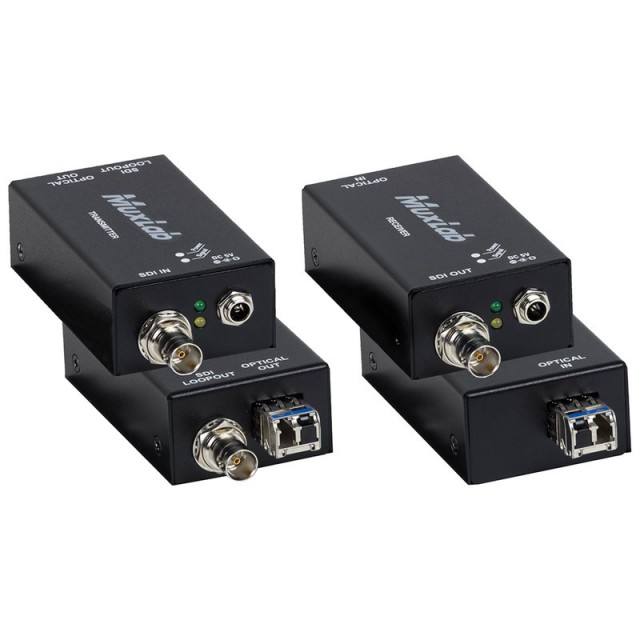 Zajišťuje přenos 12G-SDI dat na vzdálenost až 10 km pomocí jediného Single Mode optického vedení v konfiguraci point-to-point. MuxLab 12G-SDI Fiber Extender Kit podporuje přenos rychlostí až 12 Gb/s v rámci televizních studií, instalací pro živé přenosy, filmových setů apod. Sada vysílače a přijímače.
