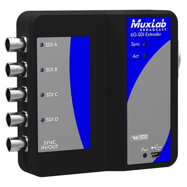 6G-SDI Extender je unikátní řešení značky MuxLab prodlužující dosah SDI výstupů z kamer nebo jiných SDI zdrojů videa s rozlišením až 4K na vzdálenost až 100 m po standardní Cat5e/6 UTP kabeláži. 6G-SDI Extender podporuje PoE napájení (vysílač může být napájen přijímačem), navíc lze kombinovat různé zdroje videa, např. jeden 6G-SDI, dva 3G-SDI nebo čtyři HD-SDI zdroje.