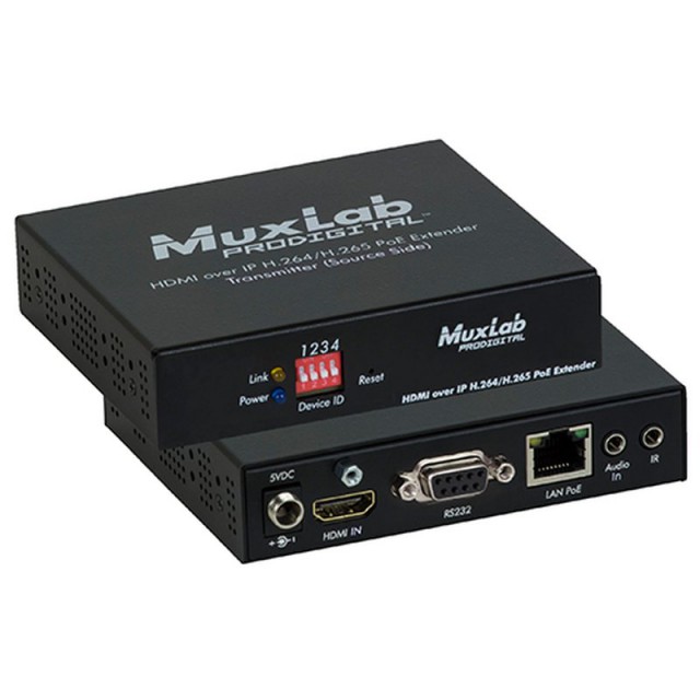 Kombinace HDMI Over IP H.264/H.265 PoE Extender vysílače a přijímače dovoluje přenášet video z HDMI zdrojů na vzdálenost až 100 m s rozlišením až 1080p60 (přijímač podporuje až 4Kp60) pomocí Cat5e/6 kabeláže v konfiguracích point-to-point, point-to-multipoint a multipoint-to-multipoint vč. podpory video stěn a multi-view zobrazení. Jde o cenově dostupné a na datový tok relativně nenáročné (max. 32 Mbit/s, latence < 200 ms) řešení pro streaming videa v rámci lokálních sítí, Wi-Fi a Internetu pro tvorbu flexibilních, distribuovaných řešení přenosu videa. Zařízení podporuje napájení PoE a může jej tedy napájet standardní PoE (PSE) Ethernet Switch. Vysílač podporuje video až 1080p60, přijímač je schopen toto rozlišení zvětšit až na 4Kp60 pro zobrazení na 4K monitorech. Přijímač také podporuje H.264/H.265 video streamy z jiných produktů, a to až do rozlišení 4Kp60. Pouze vysílač.