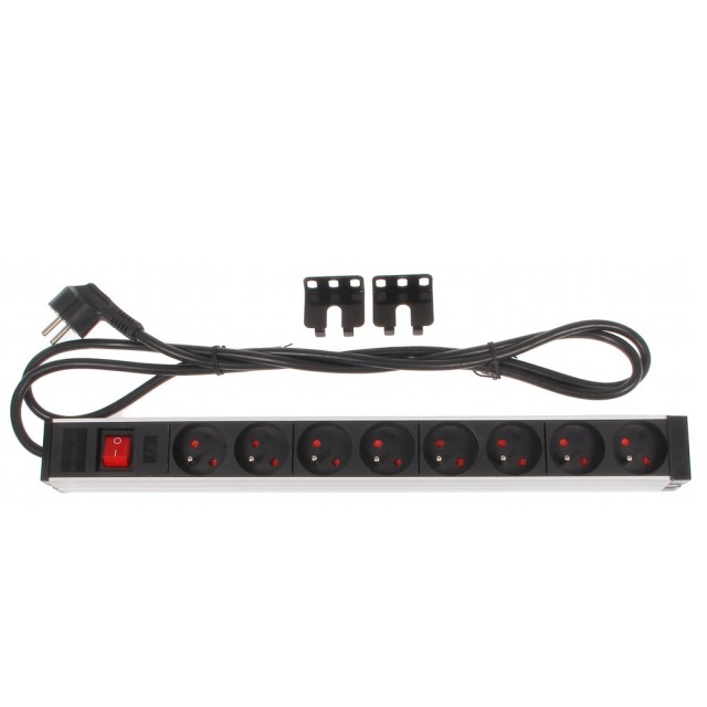 Napájecí lišta 1U PD-8K/RACK vhodná pro 19" stojany, 8 zásuvek 230 V (DIN 49441).