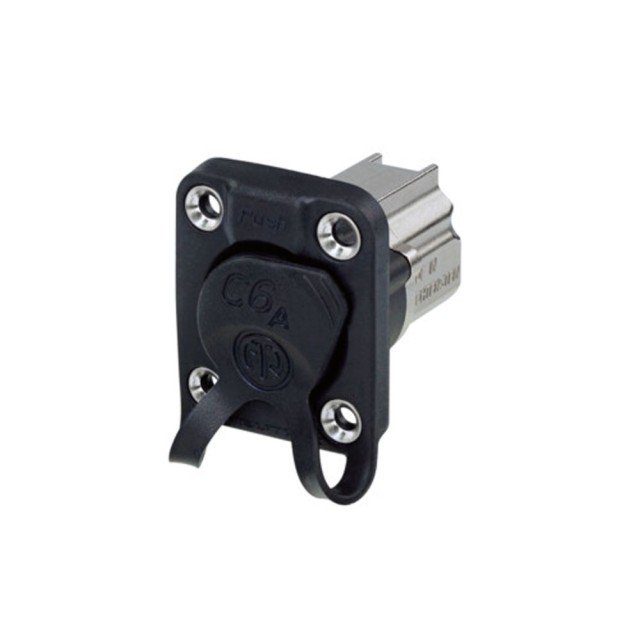 Neutrik NE8FDX-Y6-W Panelový konektor CAT6A ve tvaru D, stíněný, zakončení IDC s pryžovým těsněním, krytí IP65 po spárování, niklové pouzdro