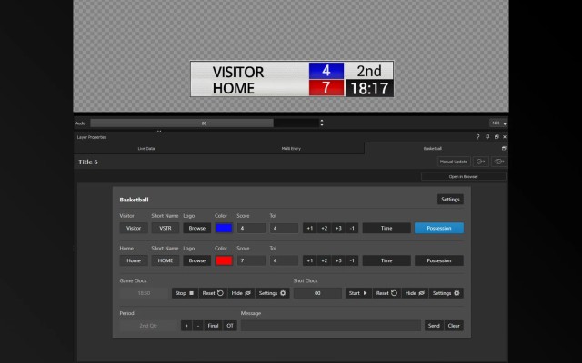 Specializovaná verze aplikace Titler Live pro živou grafiku navržená specificky pro sportovní pořady vč. výsledkových listin, průběžné aktualizace stavu zápasů/závodů apod.