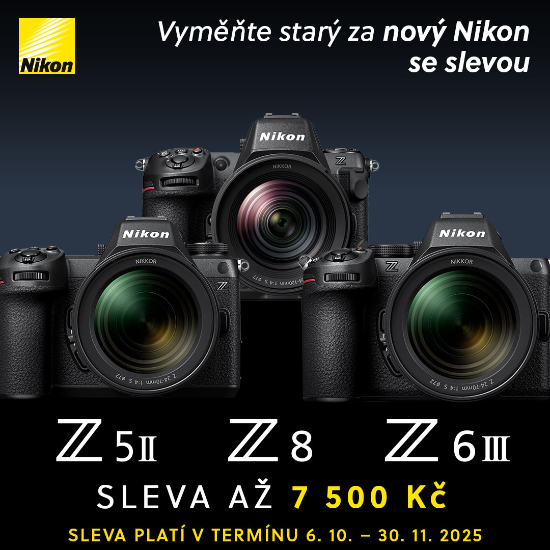 Od pondělí 6. října 2025 do neděle 30. listopadu 2025 probíhá speciální akce TRADE IN / VYMĚŇ STARÝ ZA NOVÝ na vybrané fotoaparáty Nikon.