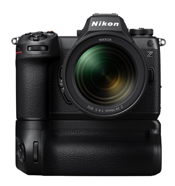 Ovládací prvky pro fotografování na výšku zahrnují tlačítko spouště, hlavní a pomocný příkazový volič, tlačítko AF-ON, pomocný volič a tlačítka Fn. S dvěma bateriemi EN-EL15c dosáhnete až 1,9× delší doby provozu a baterie lze měnit za provozu. Díky portu USB-C můžete postupně nabíjet obě vložené baterie, i když battery pack není připojen k fotoaparátu – ideální pro nabíjení přes noc.