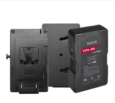 NHV-VM285 285Wh 29,6V V-Mount baterie + V-Mount bateriová deska s rychloupínacím kováním DC na NL2FX 50cm. Doba výdrže s Rayzr 7 300 Daylight přibližně 46 minut při 100% jasu.