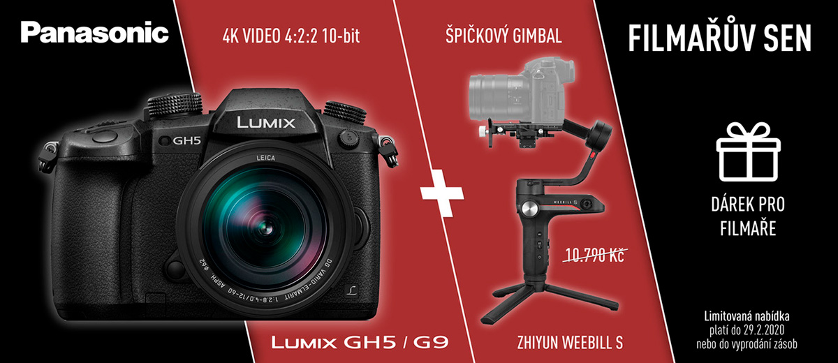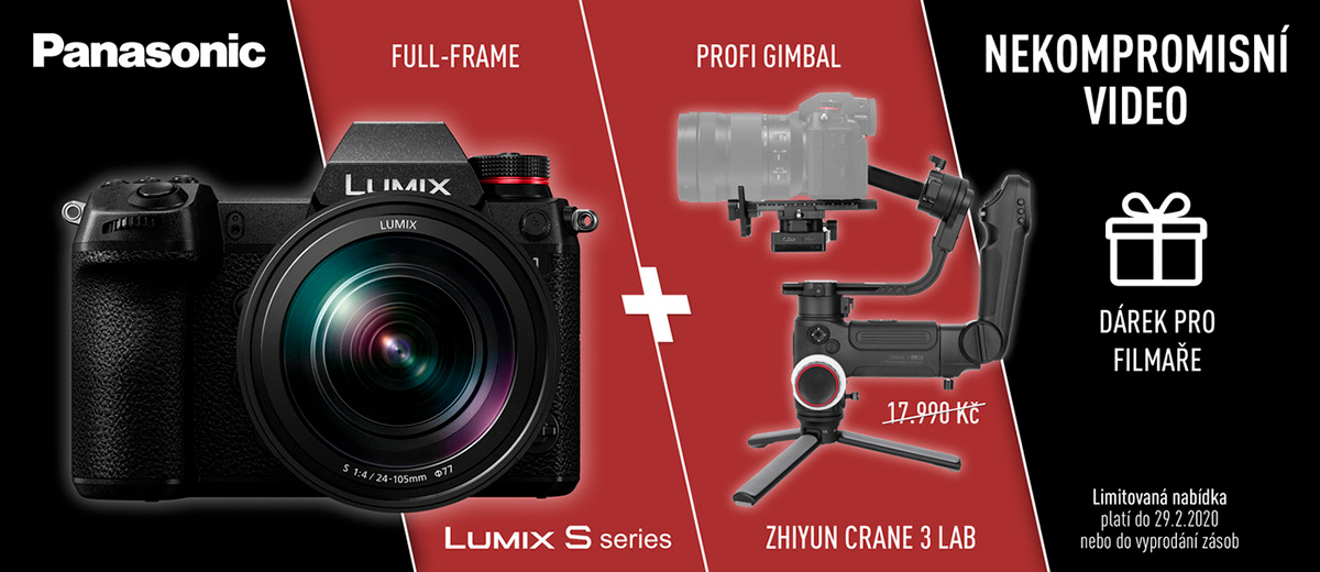 Panasonic prodloužil akční nabídky dovolující získat zdarma stabilizátor Zhiyun Weebill S resp. Zhiyun Crane 3 LAB k tělům nebo setům DSLM přístrojů LUMIX GH5/G9 a LUMIX S1. Akce nyní platí do 16. 3. 2020 nebo do vyprodání!