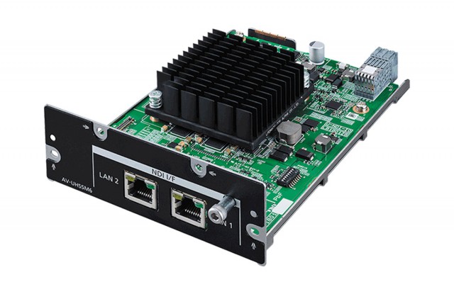 Volitelná karta pro SDI/HDMI režii AV-UHS500 s podporou IP video standardů NDI a NDI|HX. Nabízí přímé spojení s počítači a video produkty s podporou NDI pro maximálně snadnou instalaci režie do IP infrastruktury stabilních i mobilních studií -- vč. koncertních sálů, divadel, TV studií apod. Q4/2021.