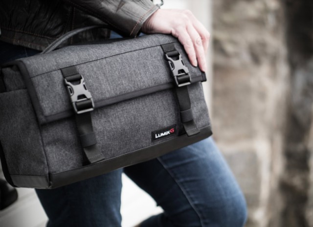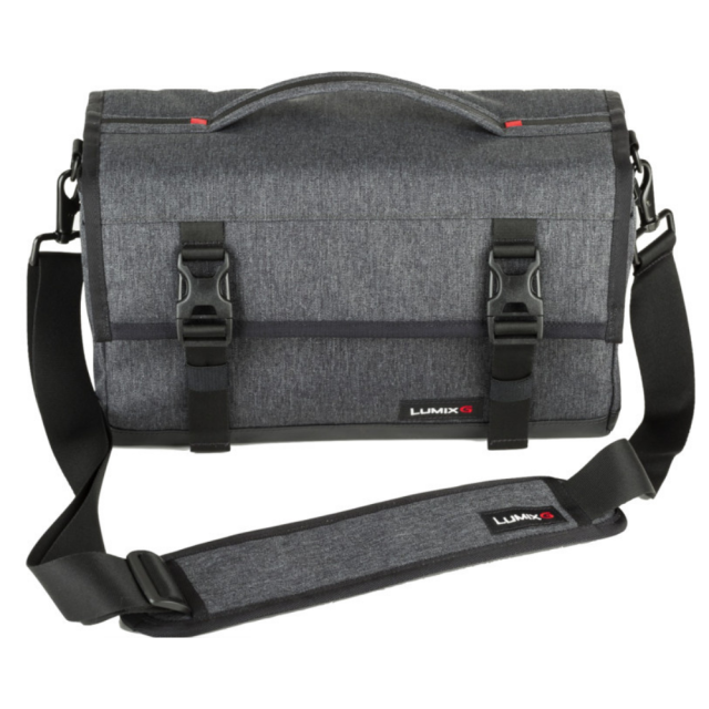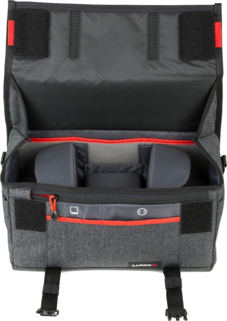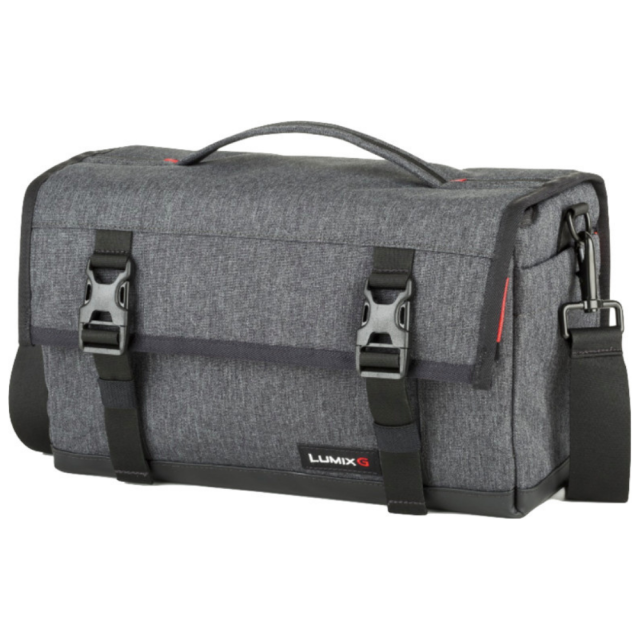 Středně velká fotografická brašna určená k přenášení fotoaparátu LUMIX G, například G80, 2 až 3 teleobjektivů a tabletu (až 8palcového).