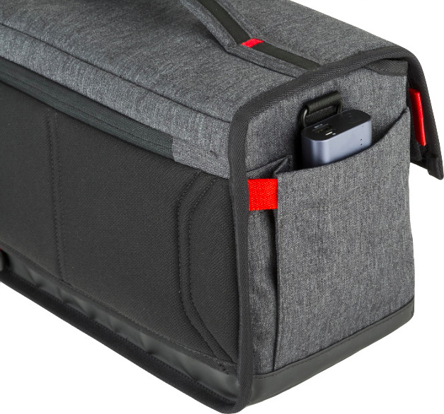 Boční strečové kapsy umožňují snadné uložení drobného příslušenství, například náhradních baterií. Své vybavení můžete přenášet pomocí horní polstrované rukojeti nebo použít ramenní popruh, který lze nastavit na různé délky a způsoby nošení