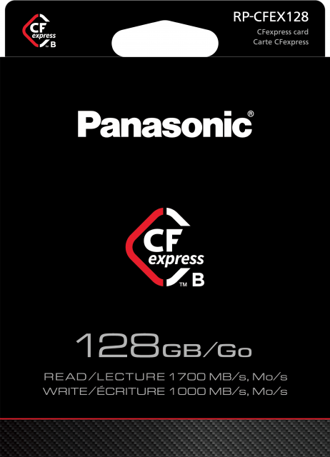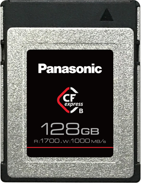 Profesionální CFexpress 128GB karta Panasonic s vysokými rychlostmi čtení/záznamu určená pro dlouhodobou zátěž a bezpečný záznam.