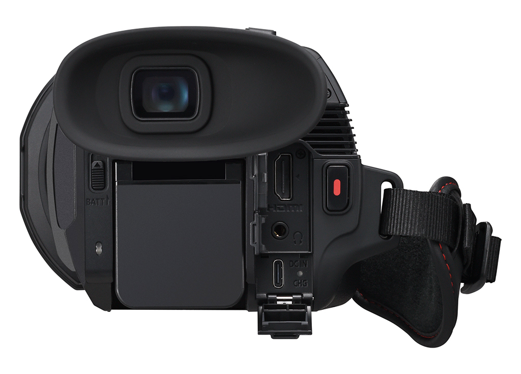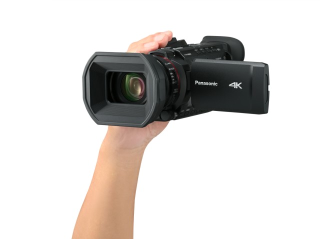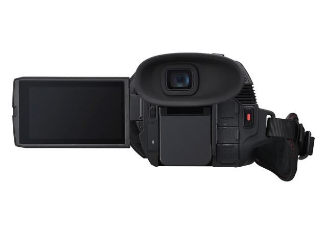 Poloprofesionální 4K kamkordér – kompaktní a lehký, s 60p záznamem, 25mm širokoúhlým objektivem, 24× optickým zoomem a velkým OLED hledáčkem. K dispozici od dubna 2025.