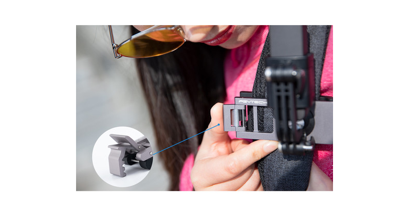 PGYTECH Osmo Pocket & Action Camera Backpack Strap Clip je univerzální příslušenství určené pro dobrodruhy, turisty a cestovatele, kteří chtějí mít volné ruce a zároveň přístup ke své kameře DJI Osmo Pocket nebo akční kameře. Tento klip je vyroben z odolného hliníku, PA a silikagelu a bezpečně se připevňuje k popruhům batohu o tloušťce až 0,4" (1 cm) a šířce 2,5" (6,5 cm). Jeho uzamykací mechanismus zajišťuje stabilitu během pohybu, zatímco tříbodový držák na vnější straně umožňuje připevnění držáku příslušenství DJI Osmo Pocket nebo většiny akčních kamer pro natáčení z vlastního pohledu. Kompaktní a lehký, vážící pouze 80 g, je ideální pro pořizování dynamických záběrů, aniž byste museli kameru držet v rukou.