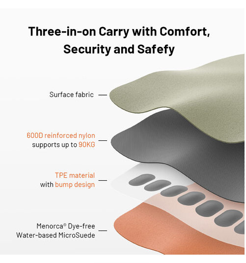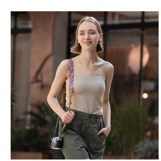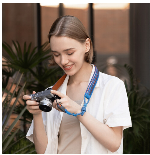 Je vyroben z prodyšného, ekologického 600D vyztuženého nylonu a pletené šňůrky Dyneema, která nabízí jak pevnost, tak flexibilitu. Rychlé spojovací prvky umožňují rychlé připevnění a odpojení fotoaparátu, zatímco podšívka TPE s protiskluzovým designem zabraňuje sklouznutí a zvyšuje pohodlí. Popruh je lehký, váží pouhých 77 g, ale unese fotoaparát o hmotnosti až 90 kg, takže je vhodný i pro těžké profesionální fotoaparáty. Z bezpečnostních důvodů vyměňte popruh, jakmile se objeví žlutá vrstva šňůry.