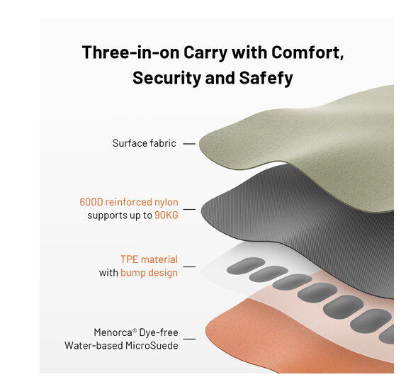 Pletený popruh Dyneema zajišťuje vynikající pevnost, zatímco rychlé spojovací prvky umožňují rychlé připevnění nebo odpojení fotoaparátu. Podšívka TPE s protiskluzovým designem zlepšuje přilnavost a zabraňuje sklouznutí, a to i při delším používání. Popruh je nastavitelný v rozmezí 99–140 cm a lze jej nosit kolem krku nebo přes rameno, což zajišťuje maximální univerzálnost.
