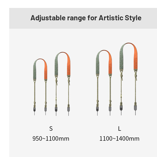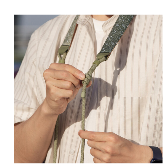 Pletený popruh Dyneema poskytuje výjimečnou pevnost, unese až 90 kg a je vybaven rychlými spojkami pro rychlé odpojení fotoaparátu. Nastavitelná délka popruhu se pohybuje od 99 do 140 cm, což jej činí univerzálním pro různé typy postavy a preference nošení. Jeho tenký profil 1,3 cm zajišťuje mobilitu bez objemnosti, zatímco stylová černá povrchová úprava doplňuje jakékoli nastavení fotoaparátu.