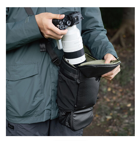 Tato taška je vyrobena z materiálu HyperGuard Cordura s vysoce výkonnou PU vrstvou a je odolná proti oděru, roztržení a postříkání. Horní víko je vybaveno sametovou kapsou, která je ideální pro baterie, filtry nebo malé příslušenství, zatímco dvojité boční kapsy ze síťoviny poskytují úložný prostor pro láhve nebo jiné nezbytné věci. Boční úchytné body umožňují připevnění dalších pouzder na objektivy. Tašku můžete nosit pomocí odnímatelného ramenního popruhu nebo ji připevnit k popruhům batohu nebo k opasku pro všestranný transport. Prodyšný zadní panel zajišťuje pohodlí při delším nošení.