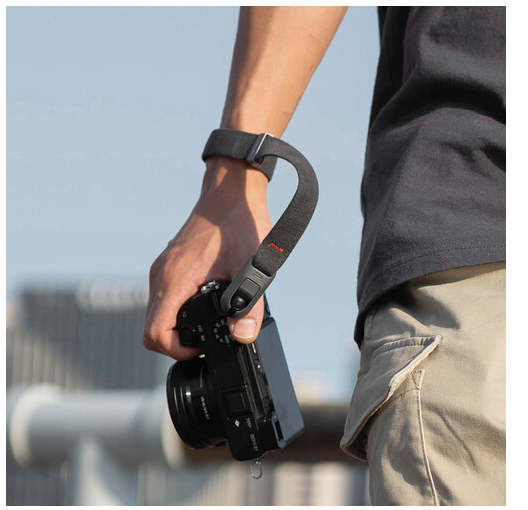 PGYTECH Camera Wrist Strap Air v tmavě šedé barvě bezpečně drží fotoaparát na zápěstí a zároveň nabízí pohodlí a rychlé nastavení. Je vyroben z měkkého mikrovlákna s vyztuženou smyčkou Dyneema a je vybaven rychloupínacím mechanismem z hliníkové slitiny, rychloupínacími spojovacími korálky a skrytou magnetickou sponou pro použití jako náramek. Podporuje fotoaparáty do hmotnosti 77 lb.