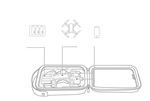 Speciálně tvarované přihrádky pro dron DJI Tello a příslušenství