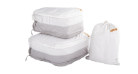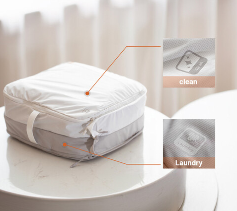 Každý vak má dvoubarevný design s jasným označením, což vám umožní snadno oddělit čisté a špinavé prádlo. Střední a velký vak jsou vybaveny kompresními zipy, které odstraňují přebytečný vzduch a šetří tak cenný prostor v zavazadle, zatímco malý vak má praktické stahovací zavírání pro rychlý přístup. Tyto vaky jsou vyrobeny z polyesterové tkaniny odolné proti zmačkání a pomáhají udržet vaše oblečení uklizené, chráněné a snadno dostupné během celé cesty. Tato sada je lehká a snadno přenosná, takže je ideální na služební cesty, dovolené a delší výlety.