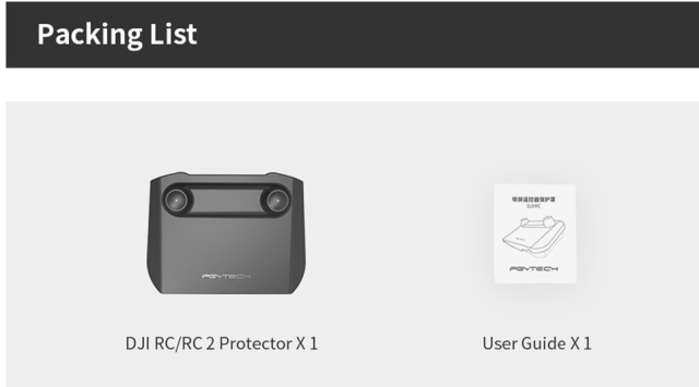 Kryt perfektně sedí na přední část dálkového ovladače, chrání displej a zároveň má vyvýšené části, které chrání připojené joysticky před nárazy. Je vyroben z odolných materiálů a má elegantní černou povrchovou úpravu, je lehký, snadno se instaluje a je nenápadný, takže chrání váš ovladač, aniž by ho zbytečně zvětšoval.