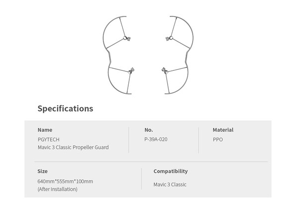 Ochranné kryty vrtulí PGYTECH P-39A-020 pro DJI Mavic 3 Classic zvyšují bezpečnost letu tím, že chrání vrtule, osoby a okolní majetek. Tyto lehké kryty jsou vyrobeny z materiálu s vysokou pevností v ohybu a jsou ideální pro létání v interiéru a pro začínající piloty.