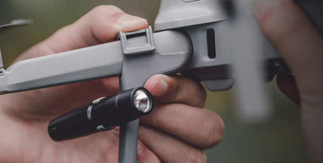 Integrovaná zadní LED světla zajišťují lepší viditelnost okolí a přistávací zóny. Každá LED dioda má čtyři režimy intenzity – vysoký, střední, nízký a pulzující – a lze ji naklonit nahoru o 50° nebo dolů o 30° pro optimální osvětlení. Navzdory přidané funkcionalitě přidává celá sada k vaší droně pouze 54 g, čímž zachovává letové vlastnosti.