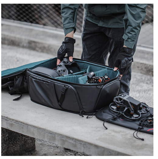 Batoh PGYTECH OneMo FPV Drone Backpack je určen pro 3–5" závodní drony FPV a drony řady DJI Mavic. Nabízí maximální úložný prostor, snadný přístup a pohodlnou přepravu. Je vybaven systémem Z-fold lay-flat, přizpůsobitelnými pěnovými přepážkami, několika kapsami na příslušenství, pouzdrem na notebook/tablet a ergonomickými polstrovanými popruhy, díky čemuž je ideální pro piloty, kteří potřebují bezpečně a pohodlně přepravovat drony, dálkové ovladače, brýle, baterie a příslušenství.