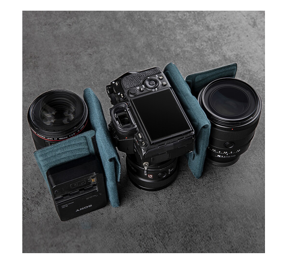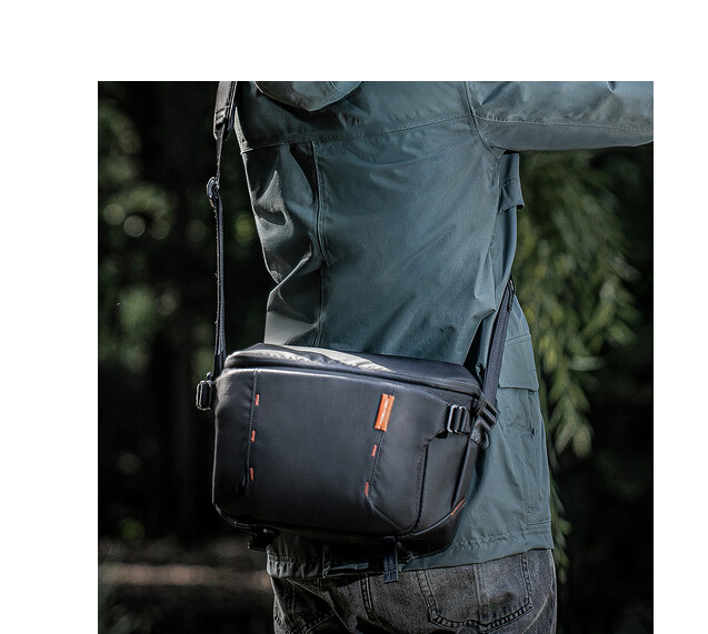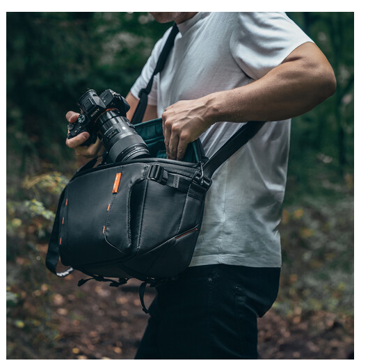 Rozepnutím střední části se kapacita rozšíří z 11 l na 13,5 l, což umožňuje uložit fotoaparát s objektivem 70–200 mm, dva další objektivy a 14palcový MacBook Pro. Spodní popruh drží stativ a další popruhy umožňují připevnění klipů na fotoaparát nebo karabin. Kapsy na baterie a indikátor napájení zajistí, že vaše zařízení zůstanou nabitá, zatímco skrytá kapsa na AirTag přidává ochranu proti krádeži. Silný, prodyšný a polstrovaný ramenní popruh zvyšuje pohodlí při delším používání a voděodolné materiály chrání vaše vybavení před neočekávaným počasím.