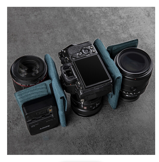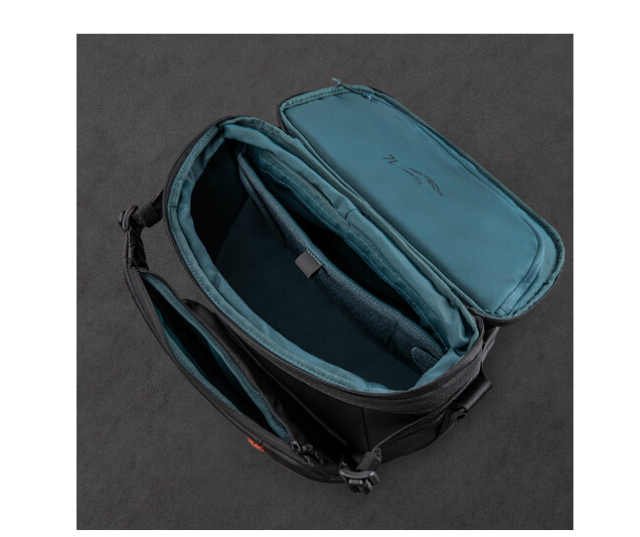 Pro větší univerzálnost lze střední část rozepnout a zvednout, čímž se kapacita brašny zvětší ze 7 l na 9 l. V rozšířeném režimu pojme brašna fotoaparát s objektivem 70–200 mm namontovaným svisle, další objektiv a iPad Pro až do velikosti 11 palců. Uvnitř chrání vaše vybavení nastavitelné polstrované přepážky, zatímco kapsa na baterie s indikátorem nabití pomáhá efektivně spravovat nabité a vybitá baterie.