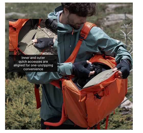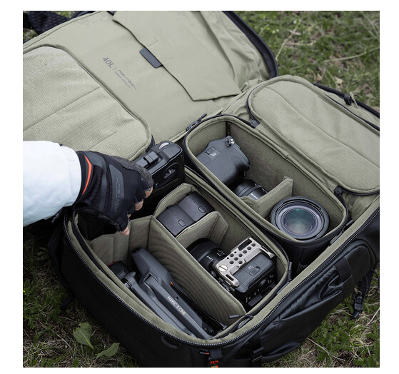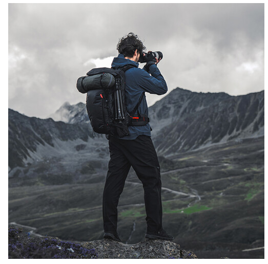Pohodlí a stabilitu zvyšují 3D tvarované ramenní a bederní popruhy, ergonomický zadní panel z prodyšné síťoviny a 3D hliníkový rám letecké kvality, který pomáhá rovnoměrně rozložit váhu. Praktické designové prvky, jako je rychlý boční přístup, boční kapsa na láhev s vodou a skrytá kapsa ve spodní části, zajišťují pohodlí během dlouhých dnů fotografování. Díky 4stupňovému systému nastavení délky zad lze batoh přizpůsobit tak, aby pohodlně a bezpečně seděl různým typům postavy.