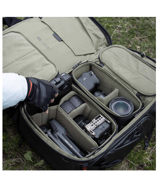 Batoh je vyroben z materiálu Cordura potaženého PU, je voděodolný a odolný proti opotřebení. Letecký hliníkový 3D obloukový rám zajišťuje strukturu a stabilitu, zatímco 3D tvarované ramenní a bederní popruhy spolu s ergonomickým zadním panelem z prodyšné síťoviny zajišťují pohodlné nošení po dlouhou dobu. Rychlý boční přístup a boční kapsy na láhev s vodou zvyšují pohodlí při fotografování a 4stupňová nastavitelná délka zad umožňuje přizpůsobení různým typům postavy.
