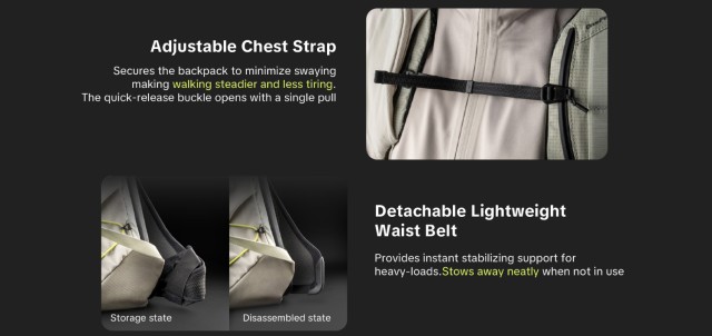 Batoh je vybaven standardní vnitřní přihrádkou s dvojím použitím (lze přepínat mezi konfiguracemi Medium a Small). Pokud není potřeba, lze ji složit a hlavní batoh se tak okamžitě promění v univerzální outdoorový batoh.