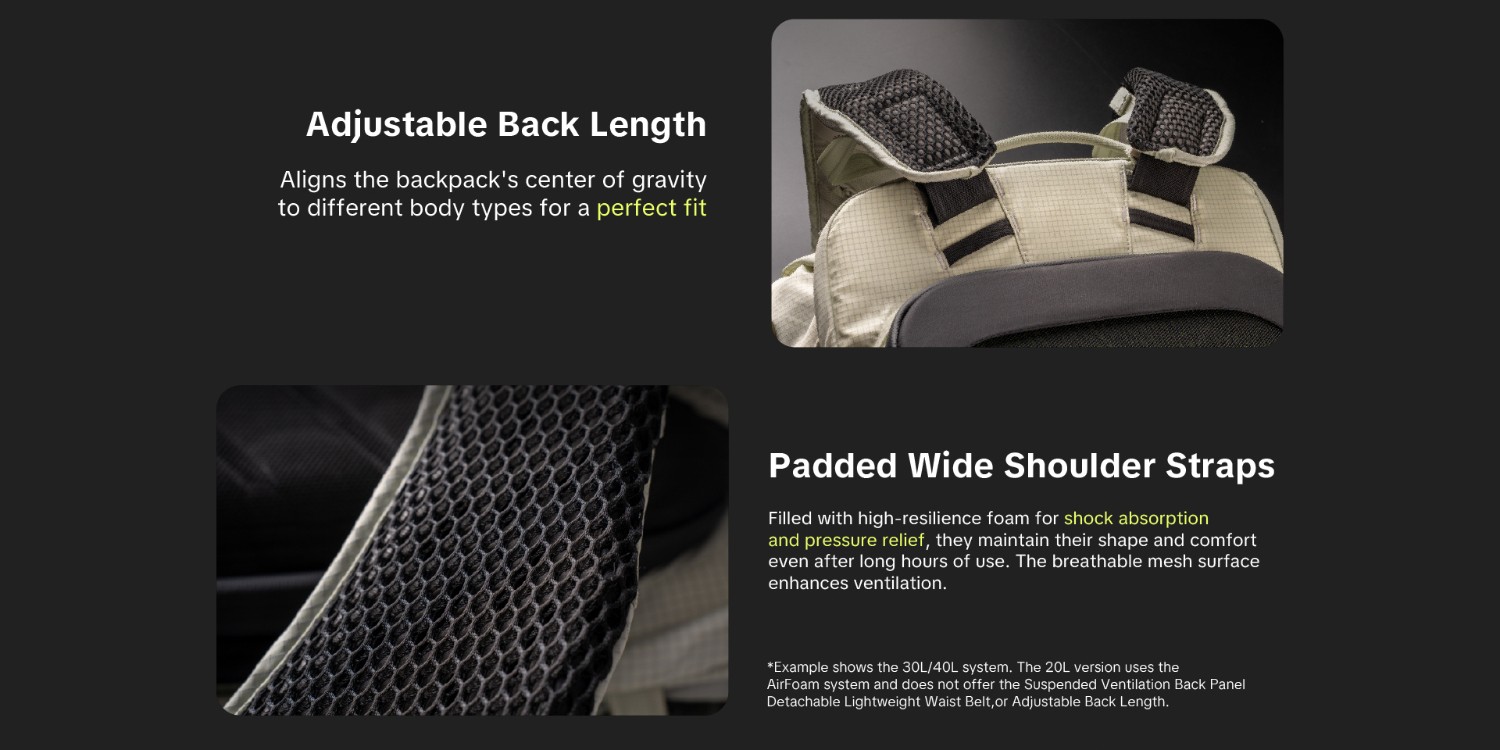 Ergonomický design se přizpůsobí vašim zádům, rovnoměrně rozloží váhu a eliminuje únavu, což je ideální pro nošení těžkých břemen na dlouhých túrách.