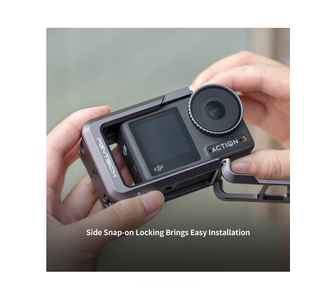 Chraňte a rozšiřte možnosti svého DJI Osmo Action 3 nebo 4 pomocí klece na kameru PGYTECH P-42C-010. Tato hliníková klec, navržená tak, aby se rychle nasadila na bok kamery, zajišťuje odolnou ochranu a zároveň zachovává plný přístup k baterii, paměťové kartě a magnetickému dnu.