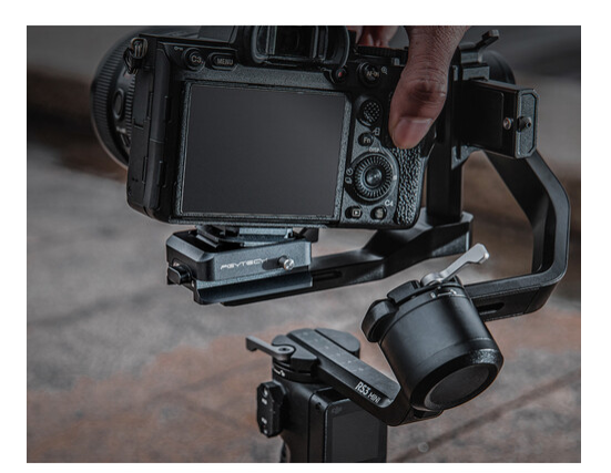 Svorka je vybavena upevňovacím šroubem 1/4"-20 na rychloupínací desce a obsahuje několik upevňovacích portů, což umožňuje kompatibilitu se stativy, posuvníky nebo jinými svorkami PGYTECH. Její konstrukce nemá vliv na stabilizační rovnováhu vašeho gimbalu Ronin. Svorka je ideální pro profesionální sestavy, kde je vyžadována rychlá instalace a zaměnitelnost.