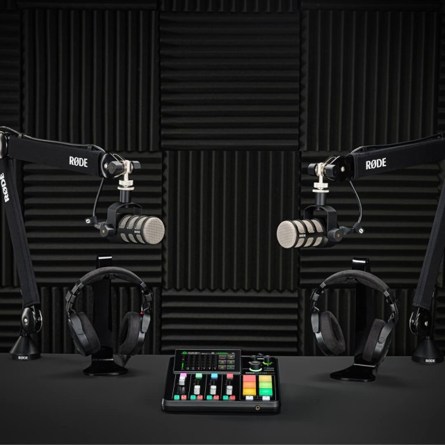 • RØDECaster Pro II nebo Duo: Integrované audio produkční studio, které nabízí špičkovou kvalitu zvuku, nekonečné možnosti přizpůsobení a intuitivní ovládání. Verze Pro II je vhodná pro 4 osoby, zatímco Duo nabízí ideální řešení pro menší týmy (2 osoby).