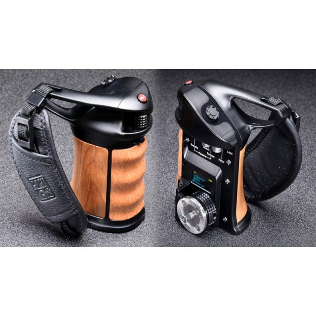 Inteligentní kamerový dálkový ovladač Keygrip je mj. vybaven přepínačem pro rychlé nastavení citlivosti ISO, závěrky a clony (na přední části madla) a joystickem s 9 polohami pro snadné procházení nabídky ovládané kamery! Díky rozhraním Bluetooth a Wi-Fi lze řadu kamer ovládat bezdrátově (např. Blackmagic Pocket Cinema Camera 4K/6K!), příp. využít některý z volitelných kabelů (LANC atd.) pro kamery bez BT/Wi-Fi podpory. Tělo ovladače je vyrobeno z odolné hliníkové slitiny a madlo z dubového dřeva pro maximální odolnost a komfort. Nechybí také skvěle čitelný 0,9“ OLED displej, zobrazení stavu akumulátorů (2x 18650; součástí dodávky vč. nabíječky), rozeta pro upevnění ovladače na kamery atd.