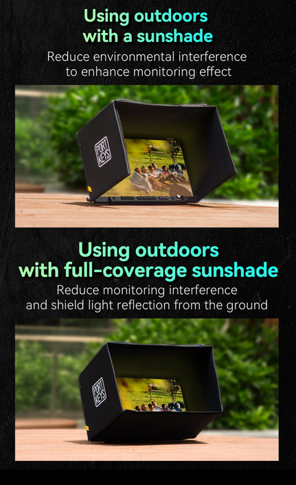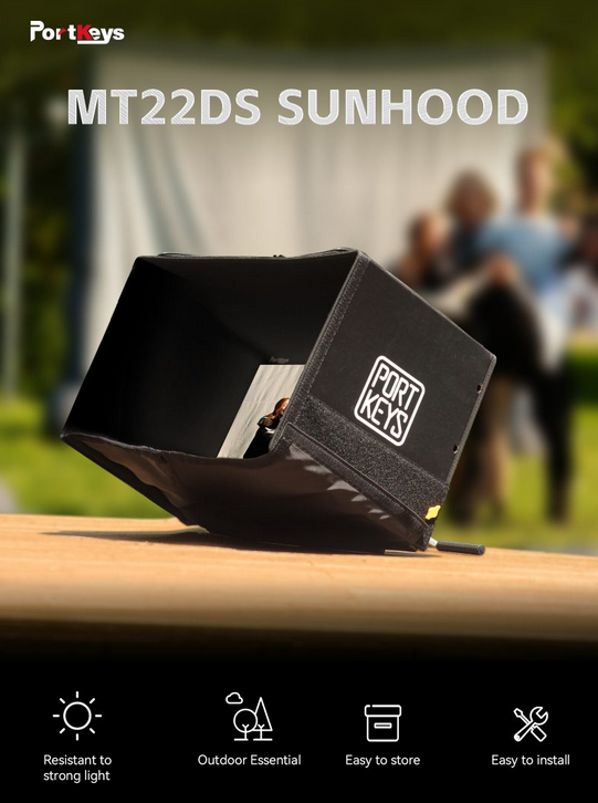 Sluneční clona Portkeys MT22DS 21,5" je originální příslušenství navržené speciálně pro monitor Portkeys MT22DS 21,5", které účinně blokuje přicházející světlo a zajišťuje jasnou viditelnost obrazovky za jasných venkovních podmínek. Tato vysoce kvalitní sluneční clona se vyznačuje přesným uchycením, snadnou instalací, odolnou lehkou konstrukcí a elegantním černým povrchem. Zlepšuje výkon při venkovním natáčení a slouží jako nezbytný doplněk profesionálního video vybavení.