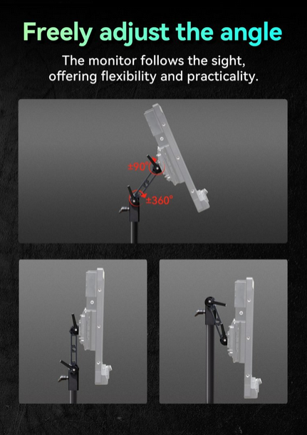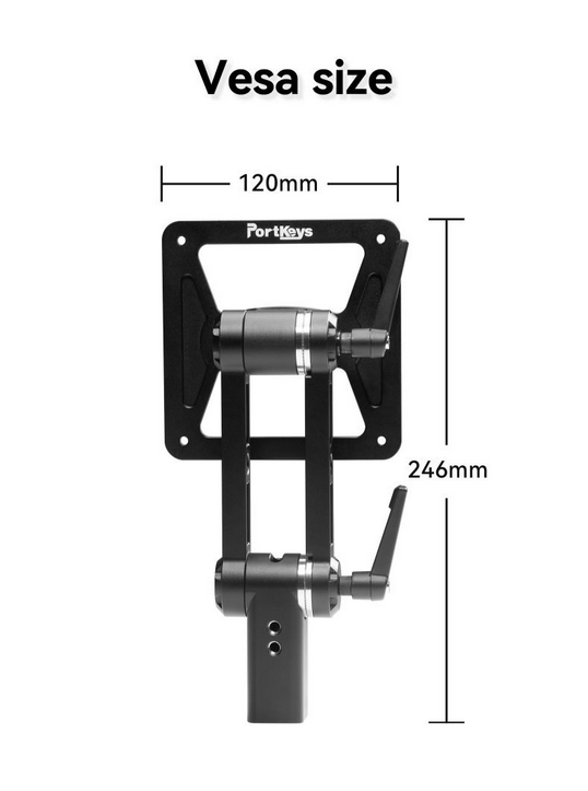 Držák Portkeys MT22DS VESA poskytuje robustní a nastavitelné řešení pro upevnění monitoru MT22DS. Umožňuje uživatelům volně nastavit úhel, aby monitor sledoval pohled, a poskytuje tak flexibilitu a praktičnost v jakémkoli nastavení. Držák podporuje naklonění o 90° a otočení o 360° pro přesné umístění. Instalace je jednoduchá a lze ji provést dvěma způsoby: připevnit přímo na zadní stranu MT22DS pomocí přiložených montážních bodů nebo připojit k magickým nohám pro větší dosah a stabilitu. Konstrukce kompatibilní s VESA měří 120 mm na šířku a 246 mm na výšku, což zajišťuje kompatibilitu se standardními rameny a držáky monitorů.