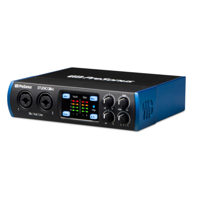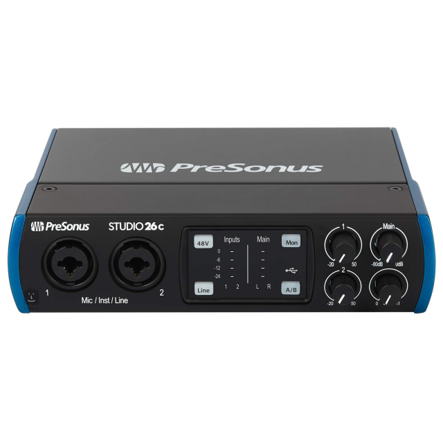 Studio 26c bolo vytvorené s ohľadom na potreby DJ-ov a elektronických hudobníkov a poskytuje vynikajúcu kvalitu zvuku s profesionálnym meraním a flexibilnými možnosťami monitorovania. Vďaka dvom bezchybným mikrofónovým predzosilňovačom PreSonus XMAX-L na nahrávanie vokálov a vlastných samplov, MIDI I/O aj linkovým vstupom pre vaše obľúbené syntetizátory a profesionálnemu meraniu vstupov a výstupov, aby ste mohli sledovať úroveň nahrávania a výkonu, prináša Studio 26c úžasnú kvalitu zvuku v robustnom, kompaktnom vyhotovení. Zvukové rozhranie Studio 26c, ktoré je kompletným nahrávacím štúdiom ihneď po vybalení z krabice, sa dodáva s bezplatnou licenciou oceňovaného hudobného produkčného softvéru Studio One® Artist od spoločnosti PreSonus, takže môžete hneď začať tvoriť.