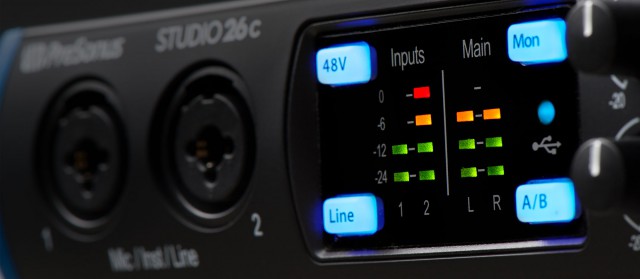 Studio 26c pracuje s frekvenciou až 192 kHz na nahrávanie a mixovanie s ultravysokým rozlíšením. Vysokokvalitné prevodníky na každom vstupe a výstupe a profesionálne mikrofónne predzosilňovače PreSonus XMAX-L umožňujú zachytiť komplexné hudobné harmónie hladko a prirodzene, bez počuteľného skreslenia. Mikrofónové predzosilňovače XMAX-L sú navrhnuté tak, aby optimálne fungovali na zvukových rozhraniach napájaných zbernicou, čo vám umožní vziať si skvelý zvuk so sebou kamkoľvek budete nahrávať.