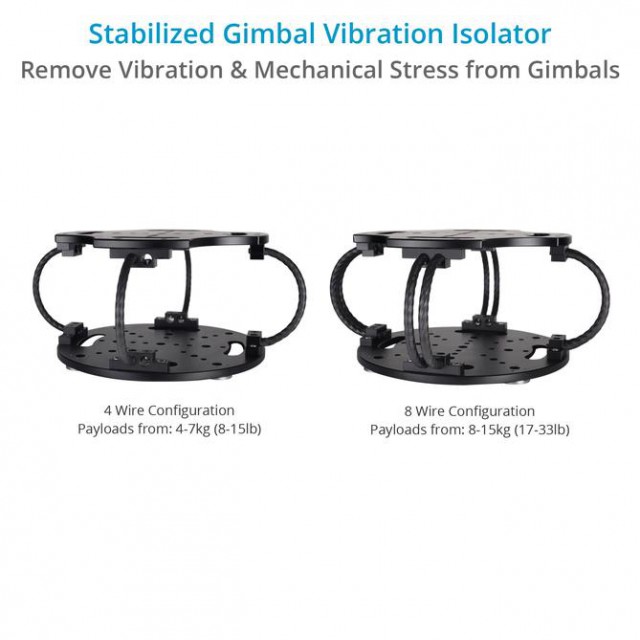 Ak nastavenie gimbalu pevne pripevníte k pohyblivej platforme, akýkoľvek trhavý pohyb spôsobuje enormné zaťaženie motorov a ložísk gimbalu, ktorý sa snaží stabilizovať kameru. Vysokofrekvenčné vibrácie vytvárané pohyblivými časťami, ako sú motory, lopatky rotora alebo vrtule, a nízkofrekvenčné vibrácie sú pohlcované náhlymi zmenami smeru, to všetko pohlcuje drôtový izolátor. Tým sa znižuje namáhanie motorov gimbalu, ktoré teraz musia pracovať len na stabilizáciu zmierneného rozsahu vibrácií, čo zase zvyšuje životnosť vášho gimbalu.